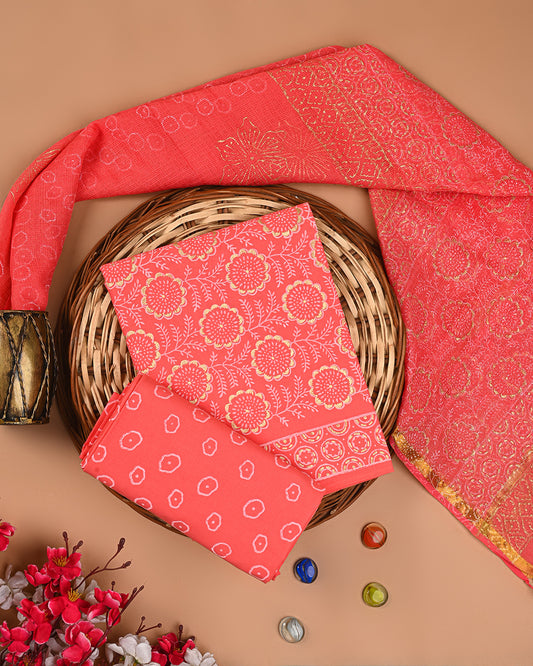 Exclusive Pink With Khadi Gold Print Cotton Suit With Kota Dupatta EACOTKO73