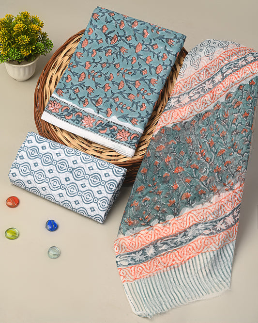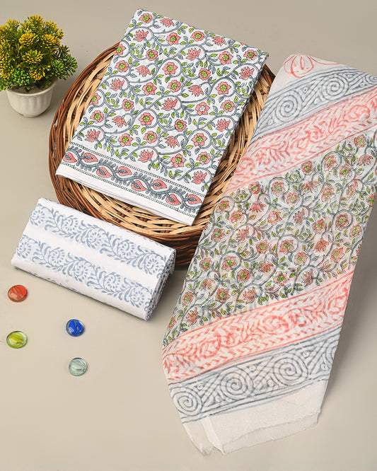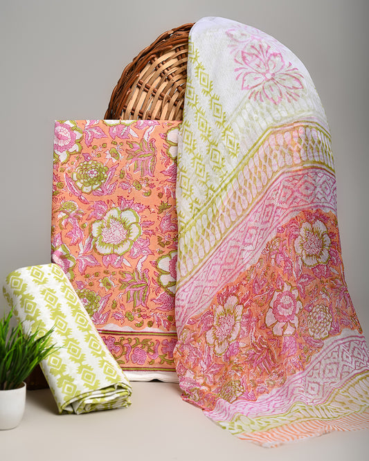 Exclusive Orange and White Sanganeri Cotton Suit With Chiffon Dupatta (EACOTCH14)