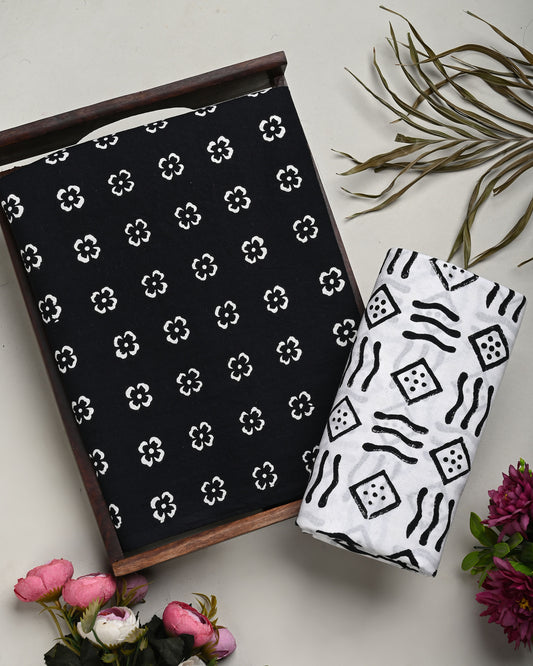 Traditional Black and White Printed Cotton Suit Top And Bottom Set (EATB48)