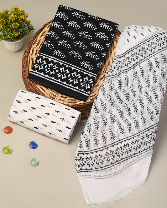 Premium Black and White Sanganeri Cotton Suit With Chiffon Dupatta (EACOTCH59)