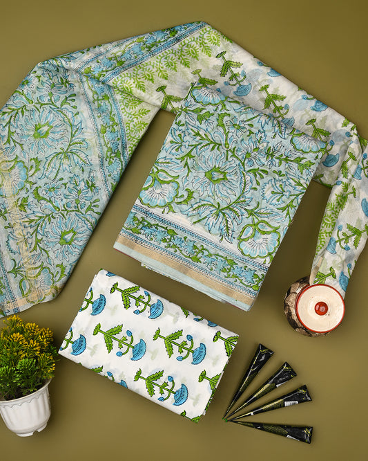 Exclusive Sanganeri Print Chanderi Silk Suit Set (EACHACH07)
