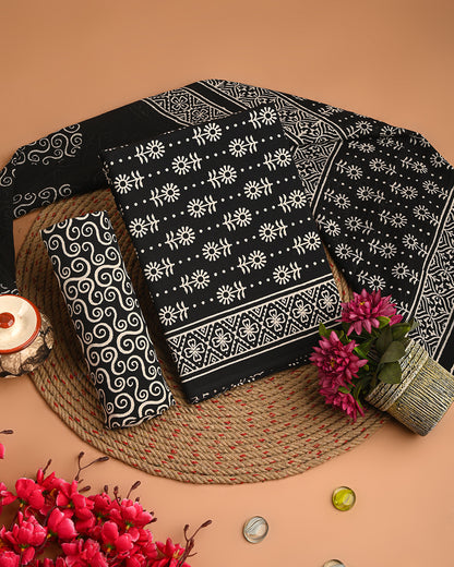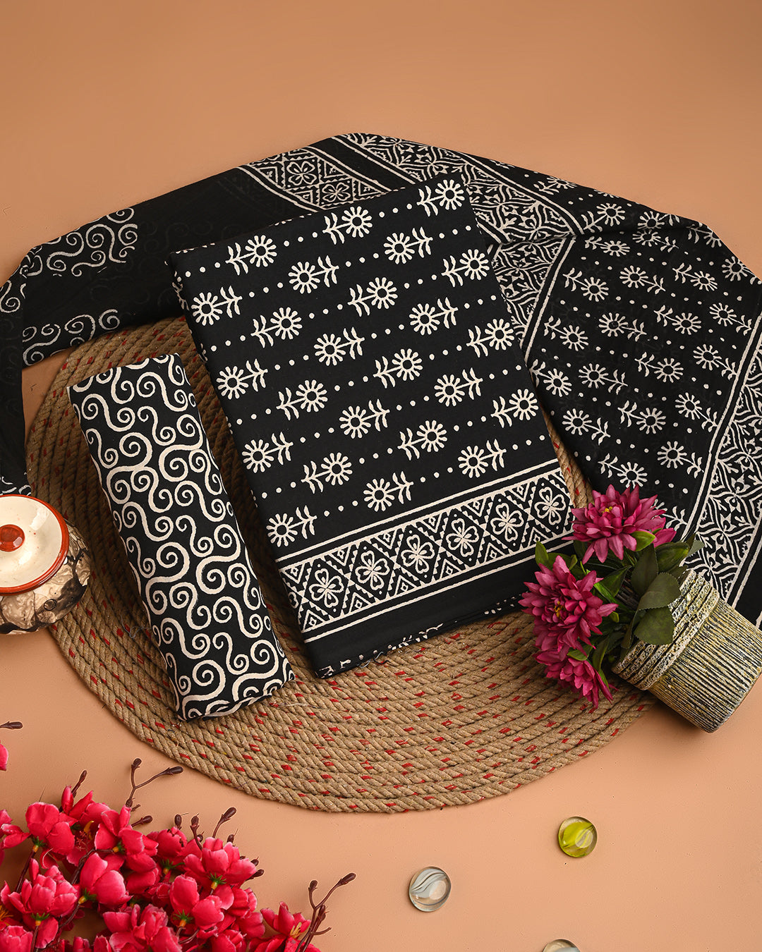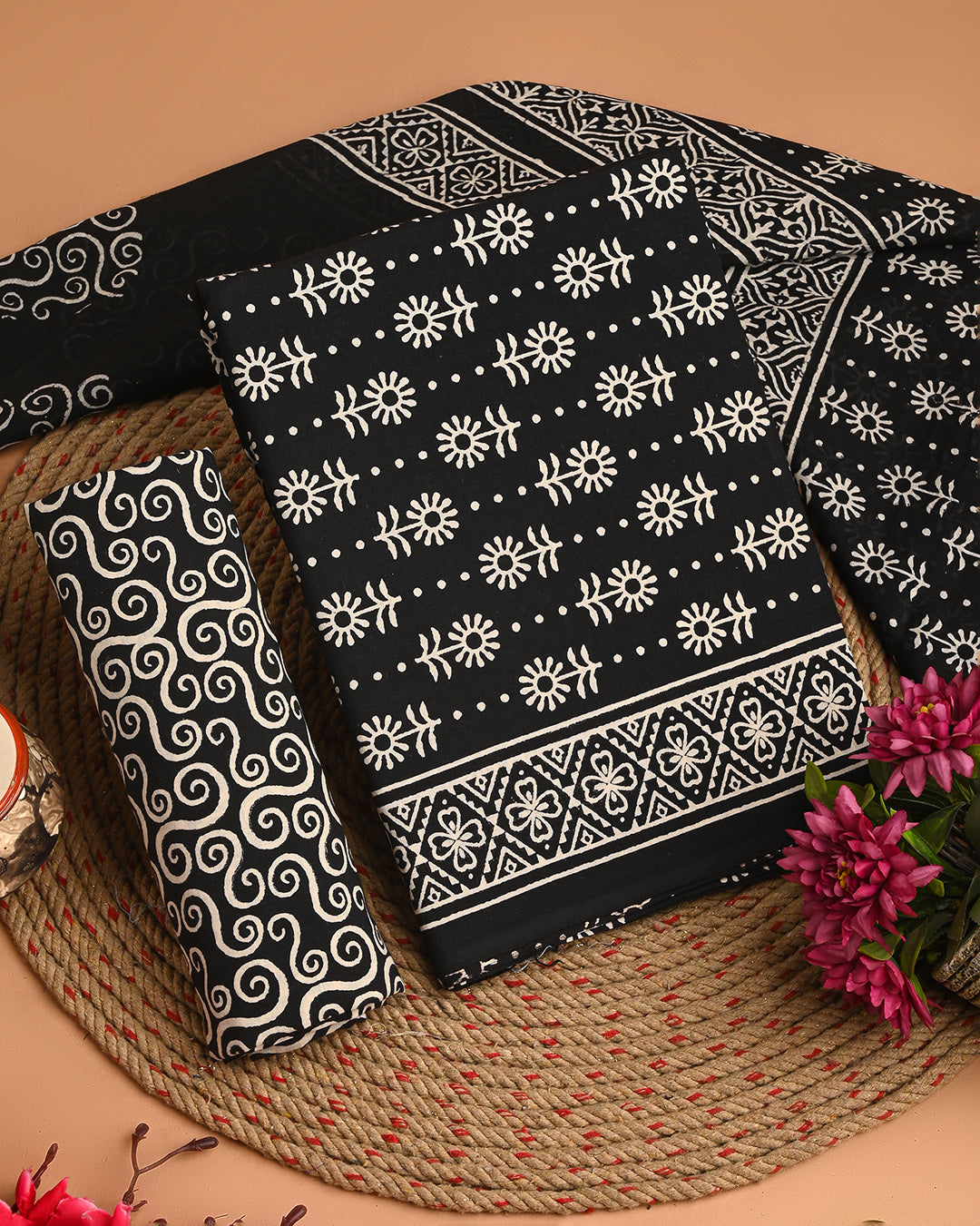 Exclusive Black Discharge Print Cotton Suit With Cotton Dupatta EACOTMU38