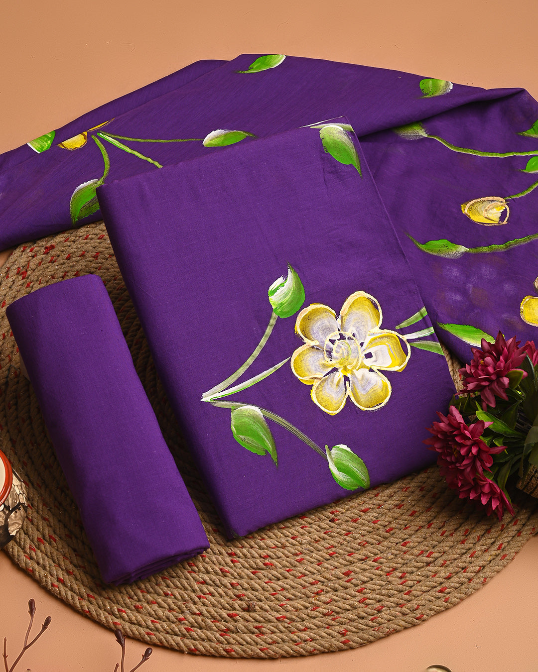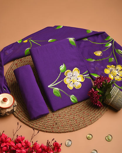 Purple Purple Floral Cotton Suit With Cotton Dupatta EACOTMU52