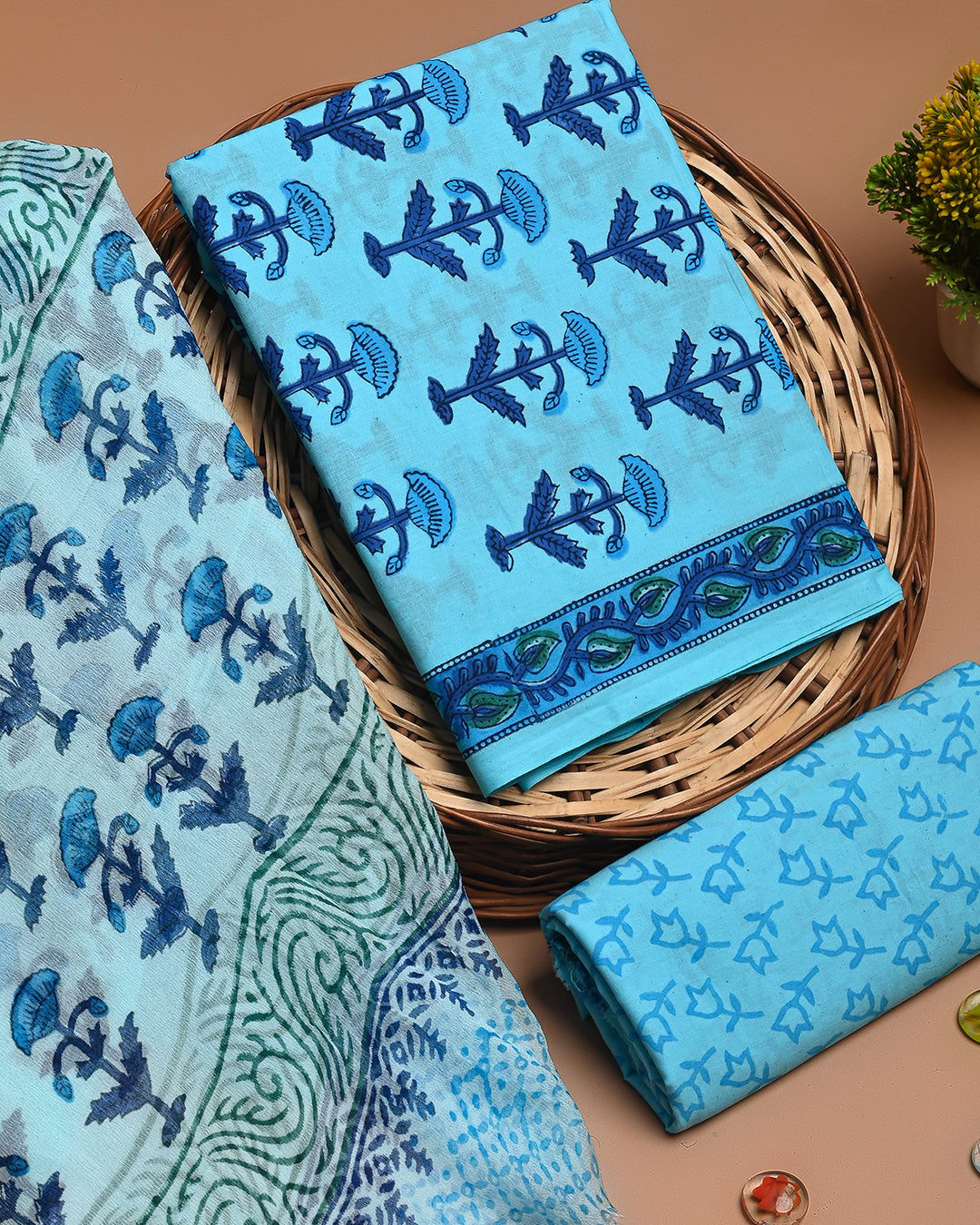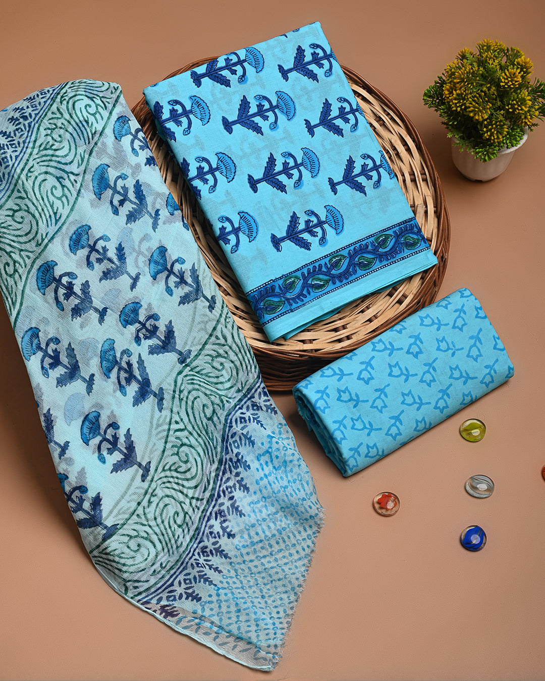 Premium Blue Cotton Suit With Chiffon Dupatta (EACOTCH38)