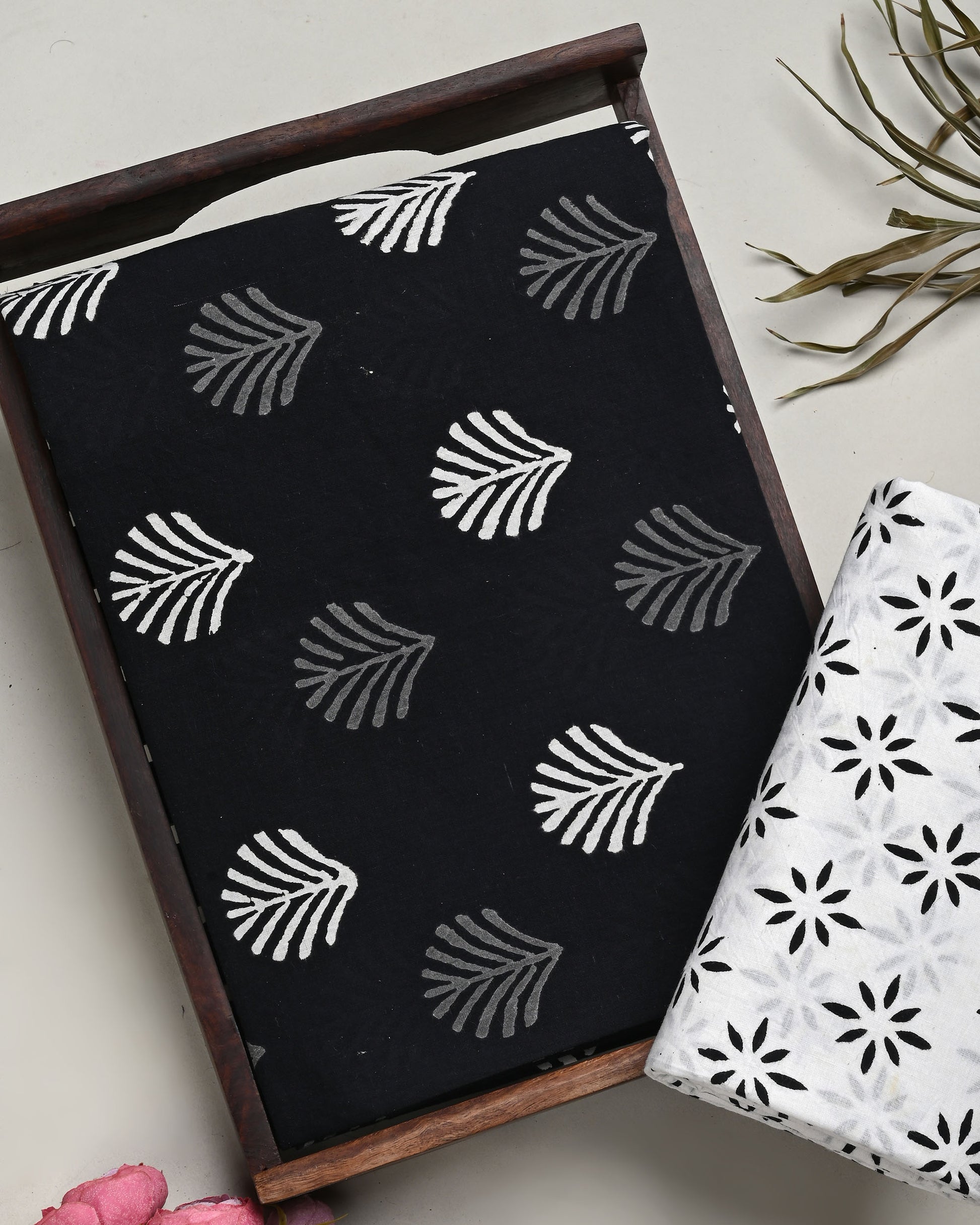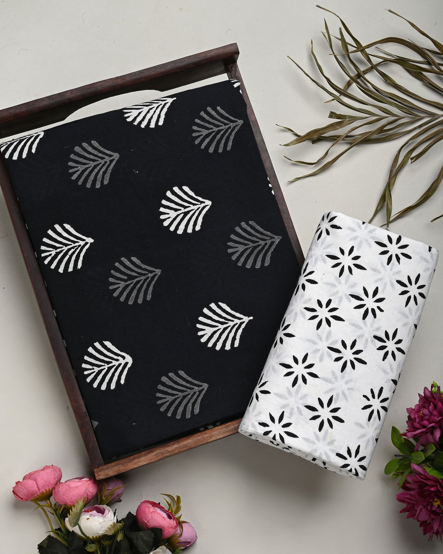 Traditional Black and White Printed Cotton Suit Top And Bottom Set (EATB45)