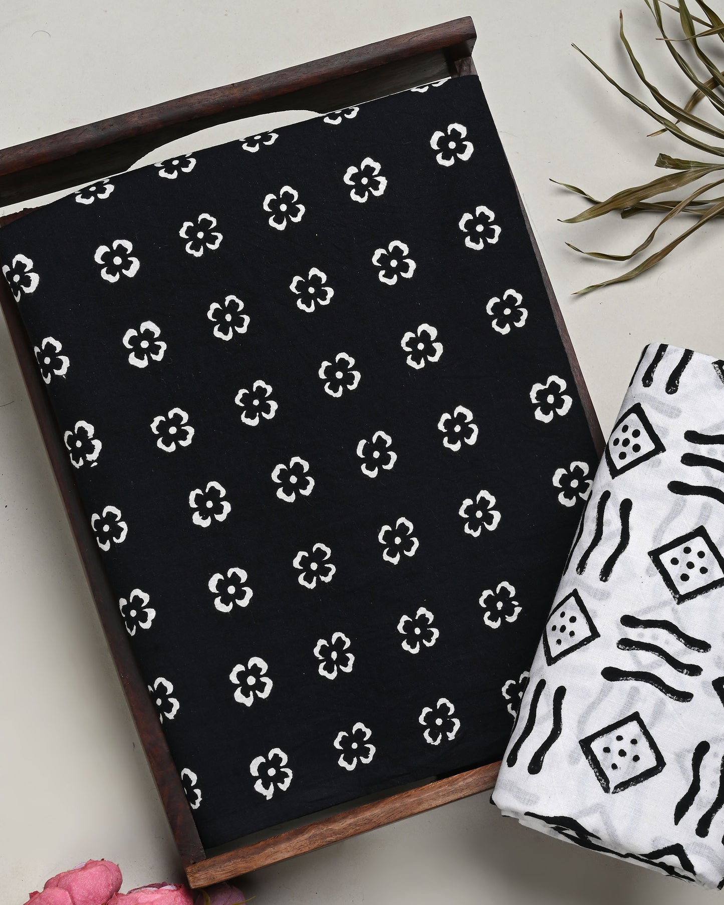 Traditional Black and White Printed Cotton Suit Top And Bottom Set (EATB48)